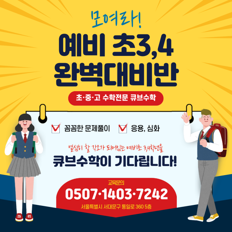 [홍제동 수학학원]초등 수학 "기초부터 심화까지" 예비 초3,4 완벽 대비반