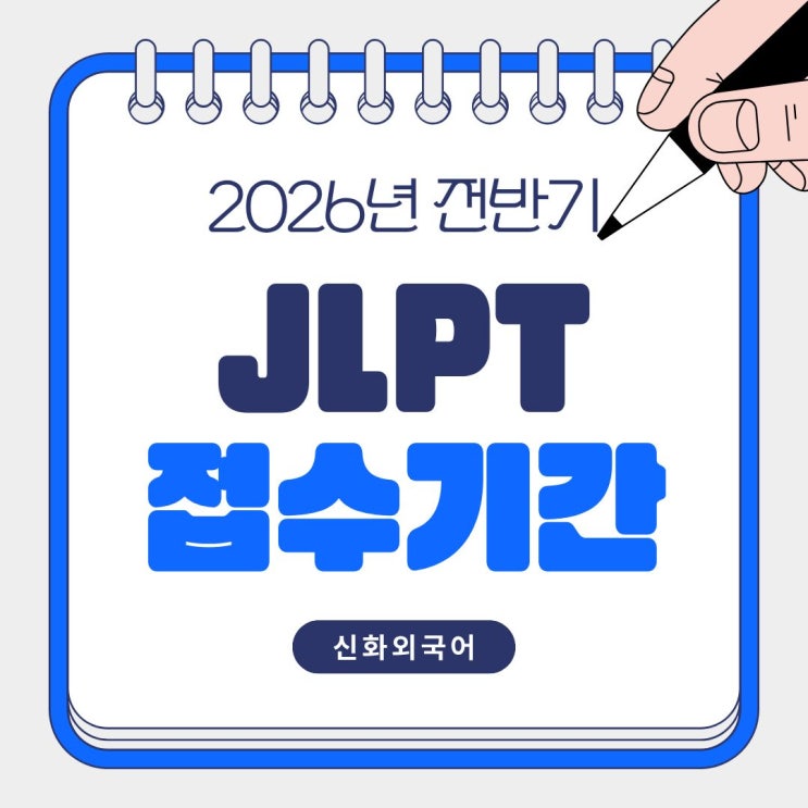 안녕하세요 신화외국어입니다^^ 오늘은 특별히 일본어능력시험인 JLPT시험의 2026년 제1차 시험 접수기간에 대해 안내드리겠습니다. 현재 접수가 진행되고 있어 이번 시험 접수가 필요하신 분들께서는 빠르게 접수하시면 좋겠습니다! 그러면 JLPT에 관한 기본적인 정보부터 시험안내, 학원 커리큘럼까지 안내해드리도록 하겠습니다. JLPT시험이란? JLPT시험이란 일본어능력시험을 뜻하며 국제적으로 가장 공신력을 가지는 일본어 자격증입니다. JLPT자격증을 통해 유학, 취업, 교환학생, 워킹홀리데이, 이민 등 다양한 종류의 인증 사례에 적용이 가능하여 일본어 공부를 하시는 분들이라면 꼭 한번 도전해보시는 자격증의 하나입니다. JLPT시험....... <img src="https://blogthumb.pstatic.net/MjAyNjA0MDdfNjIg/MDAxNzc1NTI5NzYzMTI0.K31j7XYYUqXFRGc-zwmGKdGEINLcu3xZVpFFfctKWAgg.uEAJpBSKI8QPMJpLS9bygJ0ooLwCXrkJGCMCj9O6cN4g.JPEG/1.jpg?type=s3" />