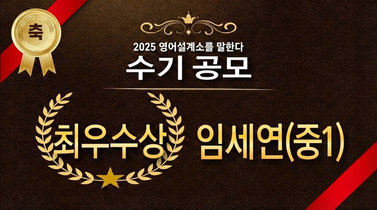 [2025 영어설계소 체험수기 당선작] " 영어포기자가 영어에 대한 자신감이 생기기까지 " ㅣ우수상ㅣ원촐중학교 1학년 임세연 영어설계소를 다니기 전, 저는 주변 친구들과 많이 비교될 정도로 영어에 대한 개념이 매우 부족했습니다. 항상 제가 영어의 기본이 잡히지 않았다는 사실을 알고 있기는 했지만, 어디서부터 어떻게 다시 시작해야 할지도 모르겠고, 다시 시작했다가 오히려 더 뒤처질 수도 있다는 불안감 때문에 늘 방황했습니다. 제가 처음 영어설계소에 왔을 때도, 저의 영어 자신감은 바닥이었고 '여기서도 제대로 이해하지 못하면 어떡하지' 라는 생각에 많이 불안했습니다. 하지만 영어설계소는 제가 지금껏 다....... <img src="https://blogthumb.pstatic.net/MjAyNjAxMTVfMjU4/MDAxNzY4NDY0OTk2NDU5.7Y-lFslo1bUV74NY4f3OZFAm94_4tp0_SX4Lue7wbM0g.wdCGzaQ4kG9FZ_ev59-yAfiayi5EcEaYNwN07aEVm5Ug.JPEG/%C3%D6%BF%EC%BC%F6%BB%F3_%C0%D3%BC%BC%BF%AC.jpg?type=s3" />