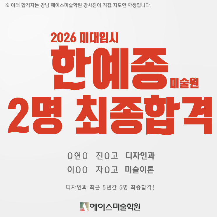 2026 미대입시 한예종 디자인과, 미술이론 2명 최종합격!