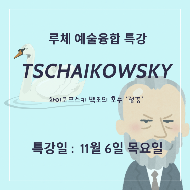 매 학기 어떤 특강일지 기대해주고 기다려주는 우리 루체 친구들 이번 특강은 러시아의 대표 작곡가 차이코프스키에 대해 알아보고 그의 3대 발레음악 중 하나인 <백조의호수 : 정경>을 감상해보았어요. 곡의 아름다움을 도어벨로 만들어 표현해보는 즐겁고 유익한 시간을 가졌습니다^^ <img src="https://blogthumb.pstatic.net/MjAyNTExMTZfNiAg/MDAxNzYzMjk1MjM2Nzk5.tqMsAgXIZWM34KB-bBDCzrsFe8KfGP9LZM6QCympeRsg.kF2xqYhb3PCTw8-6Vk59fT4nG9LIdp8sBdHaMcbX9mcg.PNG/900%A3%DF1761875196829.png?type=s3" />