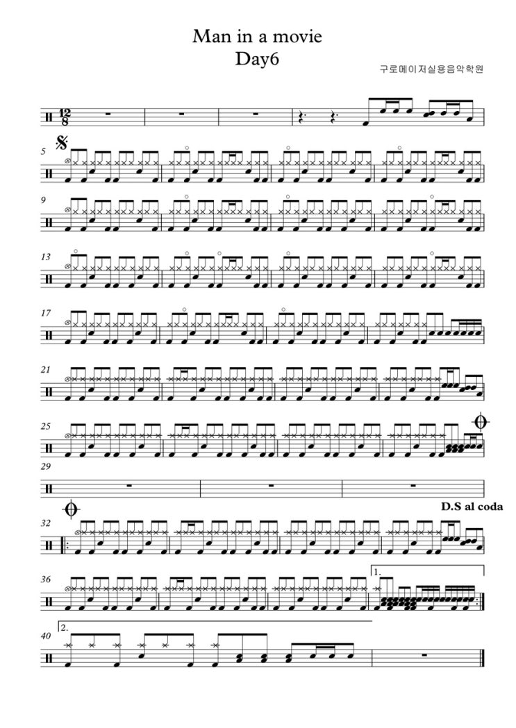구로드럼학원 가산드럼학원 신도림드럼학원 개봉드럼학원 데이식스 드럼악보 man in a movie