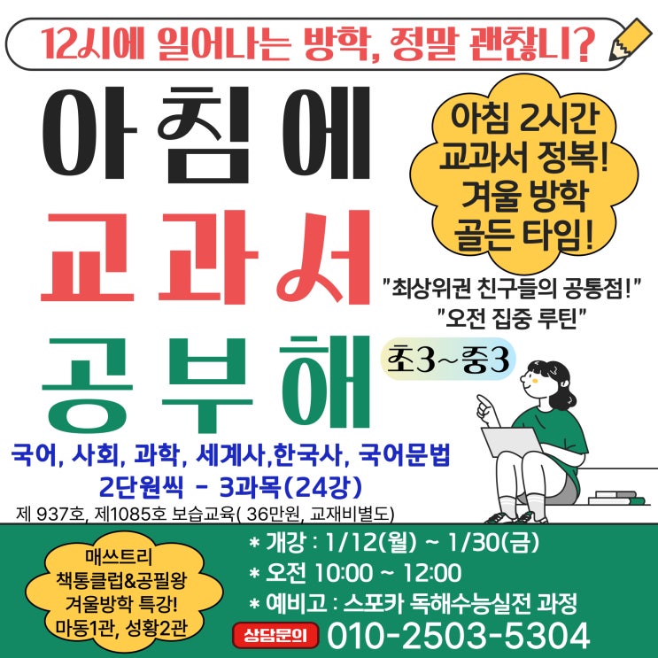 안녕하세요 이헌영어수학학원을 보내주시는 학부모님들과 다니고있는 학생분들 알다시피 우리 학원은 항상 시험 3주 ~ 4주 전에는 시험대비 주말특강을 2시간 ~ 3시간 실시하고 있습니다. (주로 토요일/무료특강) 오늘은 기말고사 직전 특강으로 오전 10시부터 오후 2시까지 시험 직전 대비 특강을 열심히 하고 있는 중2 학생들의 열정과 질문에 대한 풀이를 판서한 것을 기록해보았습니다. 시험대비 활용도가 높은 학원 자체 제작 프린트와 모든 시험에 해당하는 시험시 주의사항과 시험치는 요령 및 방법까지 학생들에게 전달하여 시험대비에 안정감과 만족감을 느끼도록 노력하는 이헌영어수학학원!! 열심히 최선을 다한만큼 성취도가 있어 수....... <img src="https://blogthumb.pstatic.net/MjAyNTEyMTNfMTkx/MDAxNzY1NTk3MTAyNDU4._PPyhZ8icyVxHgNSkTAe_syFVvzNxo8V0PTeGfe0Z2Ag.FVtuqwJBr8iJRZd_tFPY6Tipm-k64b789-S6sI-PeU0g.JPEG/20251213_112653.jpg?type=s3" />