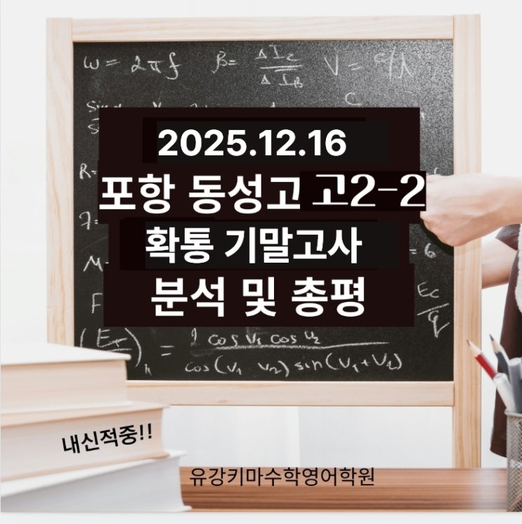 포항 동성고 수학시험은 2학년에게는 이번학기가 등급이 나오는 마지막 시험입니다. 3학년부터는 수학과목이 성취평가제이기 때문에 이번 시험이 마지막 내신 같은 느낌일텐데요. 마지막 시험이라 그런가 외부문항도 없고, 학교부교재인 '수능기출의미래'(수기미)에서 거의 대부분 주요문항들이 출제되었습니다. 그마저도 킬러문항이라 할만한 문제가 없다 보니까, 학생들의 체감난이도는 그야말로 역대급으로 쉬웠다는 반응들이 많습니다. 학생들 입장에서는 기분좋은 일일수 있겠으나, 문제가 쉬우면 등급변별이 될지 좀 의문스럽네요. 그야말로 실수 하나에 등급이 갈리는 피말리는 등급전쟁이 될것 같습니다. 키마 동성고반 친구들....... <img src="https://blogthumb.pstatic.net/MjAyNTEyMjBfMjcg/MDAxNzY2MTkyNTcxNDk3.J788w-Uu1s5d2VTAAgiy_lzj2D1yq3OKjR8nKUVzt1og.7TrWLAA8qkhLsVjGQIbgb2LSDjlaa6hc0q4UP2BSbRYg.JPEG/Screenshot%A3%DF20251216%A3%DF122359%A3%DFNAVER.jpg?type=s3" />