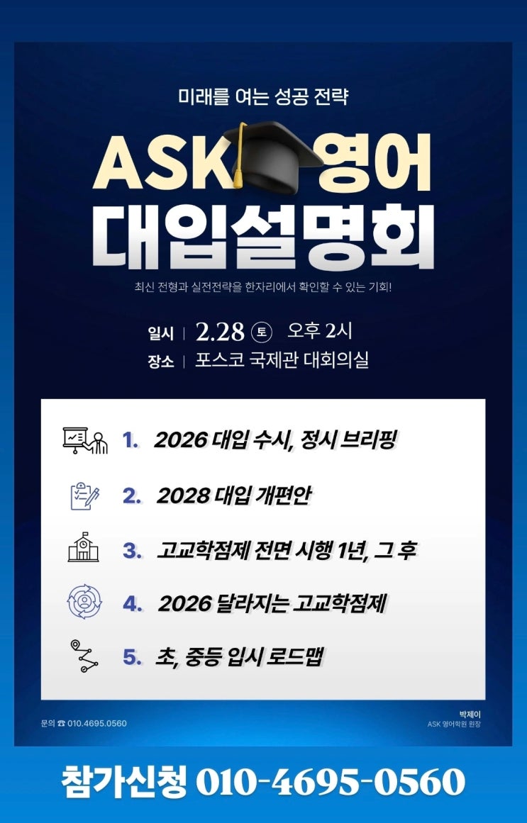 ASK 영어학원 박제이 원장의 2026 대학입시설명회 안내