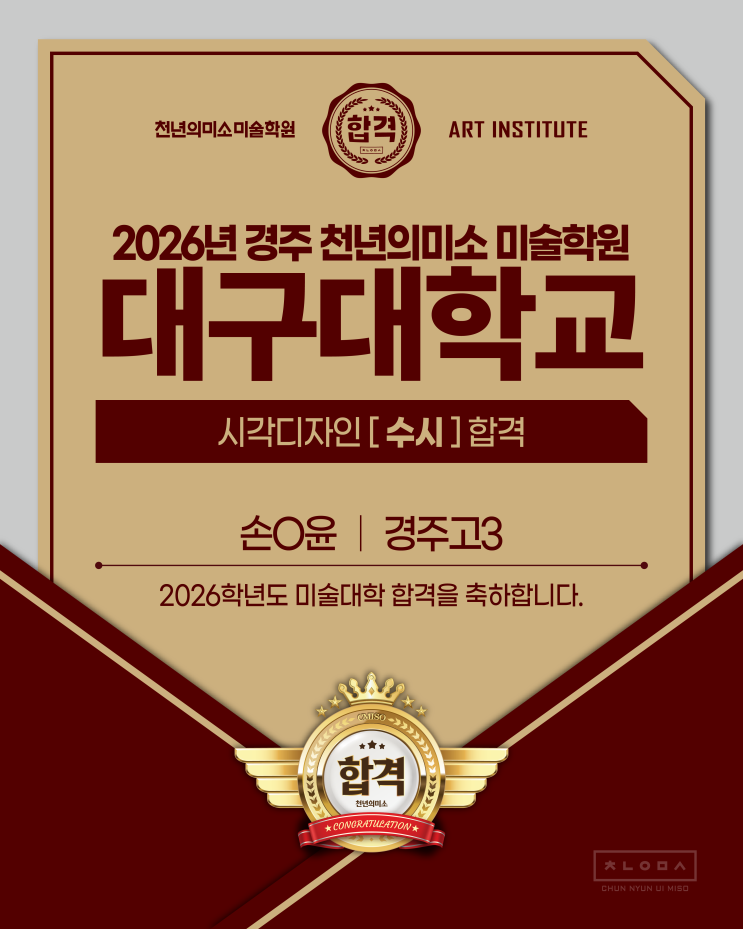 #경주미술학원 경주천년의미소에서 2026 대구대 시각디자인 손O윤 경주고3 합격!! 오직 경주천미만의 결과입니다![경주기초디자인 경주천년의미소]