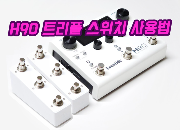 이븐타이드 H90의 스위치 사용법을 알아보자. H90에 케뎀이나 모닝스타 같은 미디컨트롤러나 PBC 같은 루프스위처를 이용한다면 굳이 스위치를 따로 연결해서 사용할 필요는 없을 것이다. 하지만 소형 페달보드에 H90을 좀 더 효과적으로 사용하려한다면 스위치를 추가해서 사용하는 것이 좋다. 이렇게 단독으로 사용할수도 있지만 이렇게 3개짜리 스위치를 연결해서 사용할 수도 있고, 이렇게 3개짜리 스위치를 2개까지 연결해서 사용할수 있다. 그럼 연결하고 설정하는 방법을 알아보자. 이븐타이드 H90 트리플 스위치 연결과 사용법 아래 영상으로 확인하길 바란다. ▼ 음악이론의 기초가 부족할 때, <무림고수 화성학>이 함께 합니다. <img src="https://blogthumb.pstatic.net/MjAyNjAzMzFfOTEg/MDAxNzc0OTU5OTk5NzM5.q29aaZ2f6lCtv1e7deVirZ6TDc_vPGtEvYIDXEeLAiMg.qFYTEhj49eP5filQm0SNSkOxuGLFXQIYMQ5X9avHlKMg.PNG/H90.png?type=s3" />
