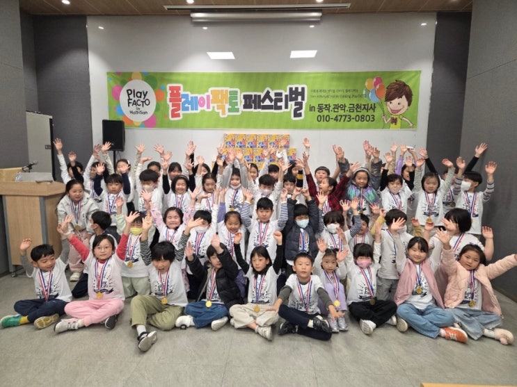 25 년 11월 22일 토요일 매쓰엠 친구들과 플레이팩토 페스티벌을 즐기다 왔어요~ 작년에 이어 올해는 더 많은 매쓰엠 친구들이 함께 했습니다~ 동작관악의 재능 많으신 팩토 쌤들의 지도아래 열심히 플레이팩토 보드 게임을 연습하고 온 다른 교육원 친구들과 한판 겨루고 온 우리 매쓰엠 친구들~~ 즐거운 하루 보내고 왔어요~ 시간중 마술쑈가 원톱!!인기가 어마어마 했죠♡ 각 연령별 게임에서 매쓰에 친구 5명이 우수한 성적을 거두어 상도 받았어요~~ 지도한 쌤에게 흐뭇한 결과를 가져다준 우리 매쓰엠 친구들~너무 고맙네요♡ 대상 최우수상 우수상 5~6세부터 수년간 함께한 우리 이쁘니들이 이렇게 적극적으로 행사에 참여....... <img src="https://blogthumb.pstatic.net/MjAyNTEyMTRfMjMy/MDAxNzY1Njc0MTE0OTIw.An6kk0x4C7_p7CV-DGOtzEmnlOWgPxJ17bfsv6qTJyUg.jfdcpRUFio7Mct91Brx-lDkTrU2nExb9MVesKVrKiEEg.JPEG/900%A3%DF1763868762637.jpg?type=s3" />