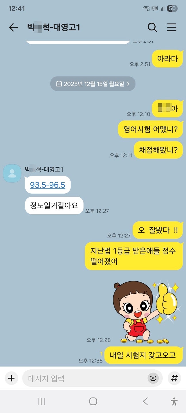 2학기 기말고사 대영고1 박O혁 영어 93.5~96.5점 1등급 예상!! (영등포 고등학원, 신길동 고등학원, 대영고, 영신고, 영등포여고, 장훈고, 여의도남고, 여의도여고)