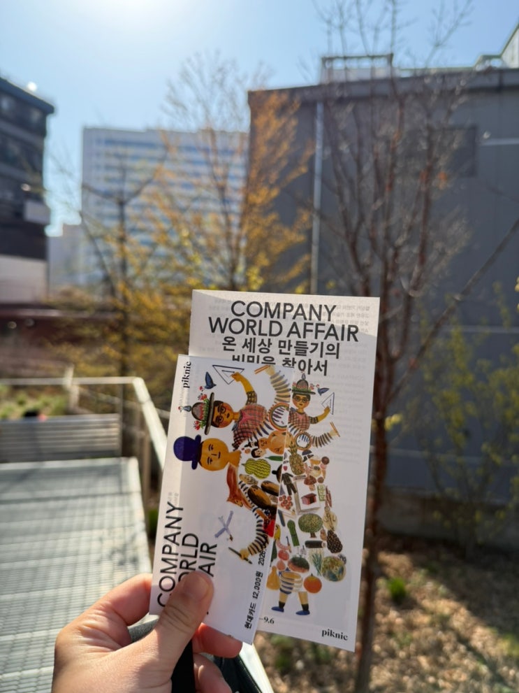 Exhibition|2026.4.3-9.6 피크닉-company world affair 오픈하자마자 바로 달려간 피크닉 전시 리뷰입니다. 피크닉전시관은 오픈이후로 거-의 모든 전시를 다 보고있을정도로 저의 최애 전시관입니다.. 티켓매표소 옆 잘 관리된 따뜻한 꽃과 풀의 정원이 있는데요. 전시보기전,후로 이곳을 천천히 걸으며 명상하고 전시를 보는편입니다. 가방 및 짐은 1층 카페 맞은편 짐보관소에 무료로 보관하고 입장가능합니다. 주말에가서 처음으로 (?) 줄을 서서 입장을했는데요. 제 앞에계신 일행분들은 한분이 카메라를 목에걸고 계셨는데, 그것도 입장불가라고 해서 짐을 맡기느라 다시 줄을 서는것을 봤습니다. 부디 짐을 보관소에 싹 맡기고 손이 가....... <img src="https://blogthumb.pstatic.net/MjAyNjA0MDZfMTA2/MDAxNzc1NDQyNzUyODc3.vJcdBdBB0qj4tz1mlpwmQK-ZNFIZ3st2WXZBmcDwIeAg.Vs_Ns7p52A5ltrwOaut2bEWjkv7Bm2wzgh4j9EDCImcg.JPEG/IMG%A3%DF1282.jpg?type=s3" />