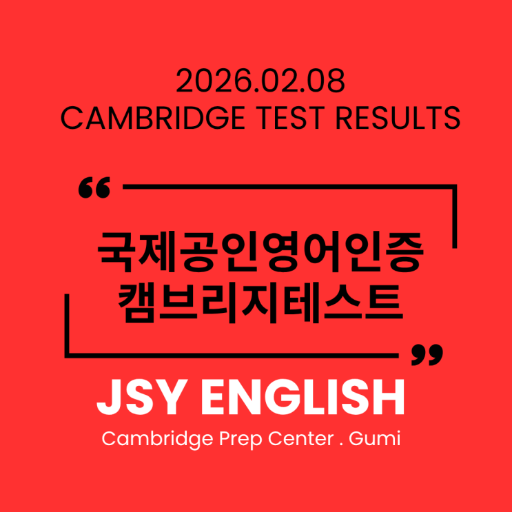 학부모님들과 상담하다 보면 이런 말씀을 자주 듣습니다. "우리 애가 영어 잘하는 것 같아요." 그런데 이 말이 어느 순간부터 조금 불편해지기 시작했습니다. 느낌엔 기준이 없으니까요. JSY ENGLISH가 국제공인인증을 고집하는 이유 JSY ENGLISH는 2018년부터 지금까지 8년 연속 Cambridge English Authorised Exam Preparation Centre 인증을 유지하고 있습니다. 왜 이렇게 Cambridge 인증을 고집할까요? 바로 명확한 기준이 있기 때문입니다. 전 세계 160개국 이상에서 통용되는 기준인 CEFR(Common European Framework of Reference) 로 우리 아이들의 실력을 객관적으로 평가받고, 국제공인인증으로 증명할 수 있습니다. 2026년 2....... <img src="https://blogthumb.pstatic.net/MjAyNjAzMjdfNzYg/MDAxNzc0NjAyNjU3MTIx.CakaHufisRO-nzZV3S55Hsid4Rl1NuDV7g89fyoueNEg.d5RDSrxtw9moOx6AKpV9U422fEQ1S3Ky5OAiGLU3IEwg.PNG/26%B3%E2_%C4%B7%BA%EA%B8%AE%C1%F6%C5%D7%BD%BA%C6%AE_%B0%E1%B0%FA_%B0%F8%C1%F6_%28JSY_ENGLISH%29_%281%29.png?type=s3" />