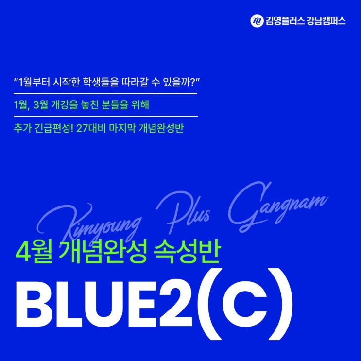 [강남편입학원] 긴급 편성! 속성 개념완성 4월 시작 BLUE2(C)반 안내드립니다