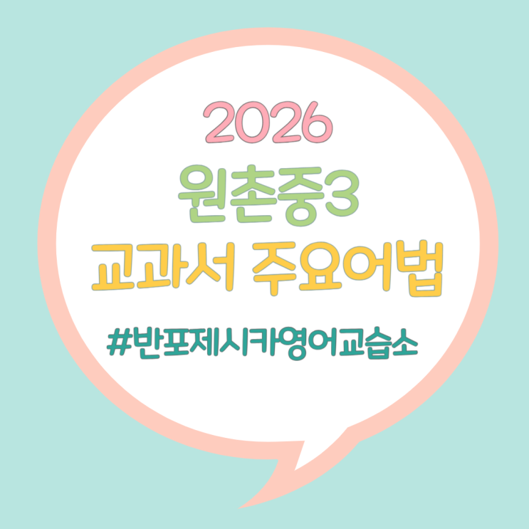 2026 원촌중 3학년 아이들이 배울 영어 교과서 주요 어법입니다. 내용을 보니 #중학영문법 심화 내용이 많습니다. 혹시 중학교 2학년 영문법이 아직 완성되지 않아서 2025년도 #내신_영어_점수가 맘에 들지 않았다면 방학 1, 2월 동안 plan을 짜서 주요 어법 부분만이라도 다시 #문법_개념_정리를 하고 문제를 풀어보았어야 했습니다. 2학년 내용에서 학습의 빈 구멍이 많았다면 중3 영문법은 이해가 잘 안되고 어렵기만 할 겁니다. ※이 부분은 선행만 하면 성적이 나올거라고 기대하는 많은 학부모님과 아이들이 놓치는 부분입니다 중학교 1학년부터 3학년까지 내용이 깊이 연관되어 있으니 중간에 한 학기라도 학습을 놓친 부분이 있다면 그 비....... <img src="https://blogthumb.pstatic.net/MjAyNjAzMTJfMjU1/MDAxNzczMzI2MDkzOTc4.pPqL3b4ky-aY5IOz3DRtkwVt9G3E8YWXcylY2BR7pmUg.TBfMJSJWU0gb6B0TQOUtBWnZYp9VzM-r-6XKhsATrgcg.PNG/%BF%F8%C3%CC%B1%B3%B0%FA%BC%AD%C1%D6%BF%E4%BE%EE%B9%FD-001.png?type=s3" />