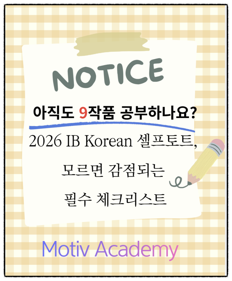 안녕하세요.~ IB Language A 와 B 과목을 10년 넘게 관리해 온 모팁 아카데미 원장썜입니다. 오늘은 IB Diploma에서 Language 과목 선택할 때 무엇을 기준으로 판단해야 하는지 정리해 드리겠습니다~ 고려해야 할 사항에 대해 설명드려보고자 합니다. 마지막에는 Self-Taught Korean에 대한 주의 사항도 말씀드릴 테니 끝까지 읽어봐주세요! [1] 가장 많이 받는 질문: “A Korean vs B Spanish, 뭐가 유리할까요?” 먼저, Diploma 과정을 앞둔 학생들과 학부모님들께 자주 받는 질문입니다. Language A Korean 와 Language B Spanish 중에 어떤 과목을 하는 게 우리 OO에게 유리할지 모르겠어요. IB 과정을 잘 모르시는 분들은 당연히 모국어인 L....... <img src="https://blogthumb.pstatic.net/MjAyNjAxMjVfNDUg/MDAxNzY5MzMzMTc3MDMy.R3qguXhW_4nSWhxg-VPp04YqkPUFnEiEHVPm-YFV5qgg.IzJWS-8PhXPRlUvAosQQd8ghZbwDTpfk-8h7pC3aqNcg.PNG/image.png?type=s3" />