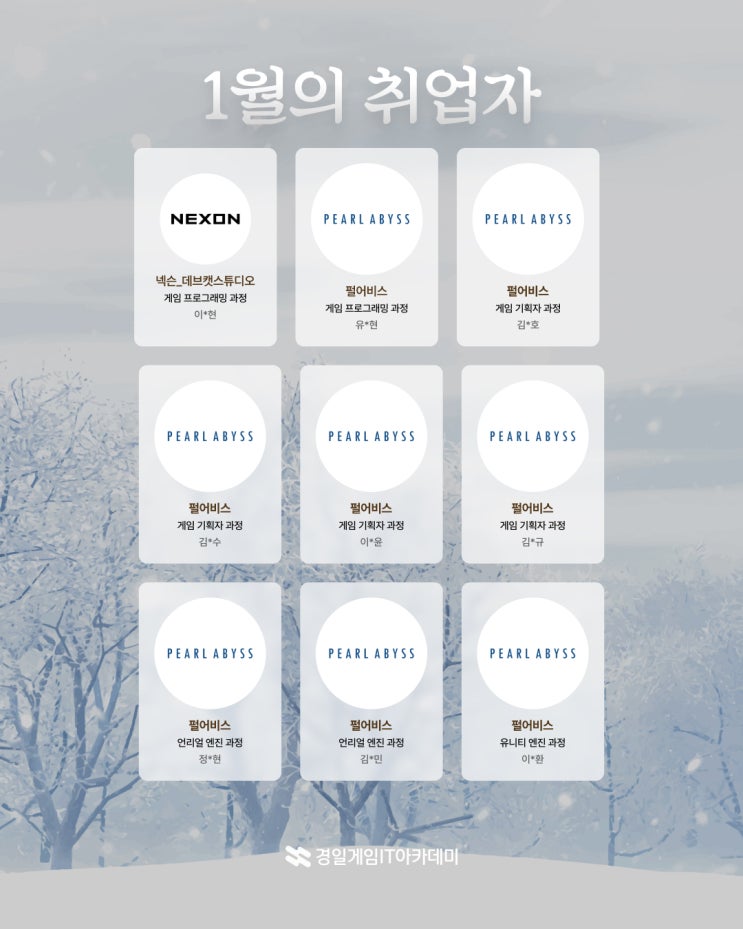 취업을 축하합니다! 수료와 더불어 취업이라는 목표를 달성한 수강생들의 미래를 앞으로도 응원하겠습니다! 실무에 가까운 커리큘럼으로 게임 업계 취업이라는 꿈을 이루어 보세요! 더 많은 취업현황은 아래 링크에서 확인가능합니다 :) https://kiweb.or.kr/status/ ◾ 상담문의 ↴ 전화상담 02-479-4050 카카오톡채널 경일게임아카데미 https://pf.kakao.com/_nsNxkM <img src="https://blogthumb.pstatic.net/MjAyNjAyMDRfMjc3/MDAxNzcwMTg1MzQ0MDM1.GTWP9zfdqbCjXv8FLl19M9fwG7vXuSa1cAeirTTiXzog.6N4UZeq7jZOx6I8u9kknY1rEK5kgMEJvaVKh6ffVkdYg.JPEG/1%BF%F9%C3%EB%BE%F7%C0%DA_-_SNS.jpg?type=s3" />