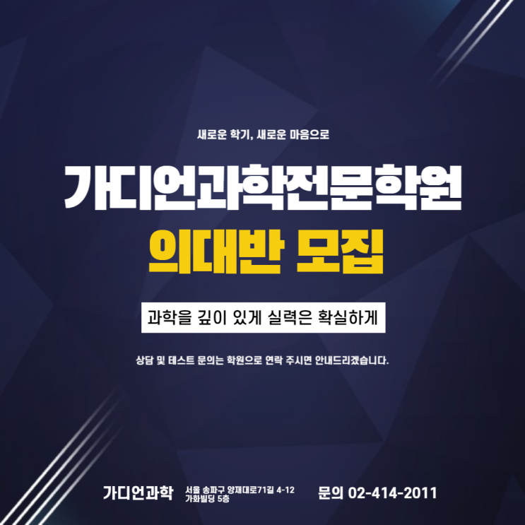 가디언과학전문학원 의대반 모집_ 중등 심화부터 고등 물리·화학까지