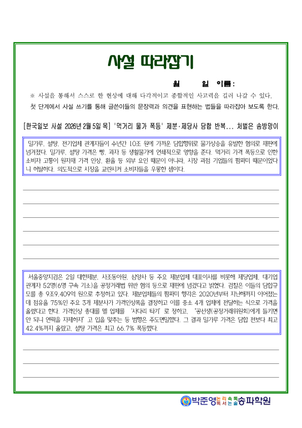 2026년 2월 5일 사설 과제입니다. 첨부 파일 확인바랍니다. <img src="https://blogthumb.pstatic.net/MjAyNjAyMDVfMTAz/MDAxNzcwMjQ4MDIyNDE5.xy4MuQLbqR9UsOYssqdSPXNqm687HqktIhTfh1fuXSgg.mGMlHLPVdirkze7RtDgdGkillb-68GjJ6ecOWMSea1Mg.GIF/01.gif?type=s3" />