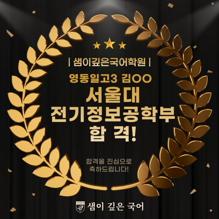 서울대 전기 정보공학부에 합격했습니다. 안녕하세요, 샘이 깊은 국어학원입니다. 오늘은 2학년 때 본원을 찾아와 국어의 '터닝 포인트'를 맞이하고, 마침내 서울대학교 합격이라는 최고의 결실을 맺은 김OO 학생의 소식을 전해드립니다.! 서울대학교 전기 정보공학부 합격 김OO 학생이 처음 본원의 문을 두드렸던 2학년 당시를 기억합니다. 샘이 깊은 국어의 커리큘럼을 접한 직후 치른 첫 시험에서, 김OO 학생은 곧바로 영동일고 전교 1등이라는 드라마틱한 결과를 만들어냈습니다. 단순한 성적 상승을 넘어, 국어를 바라보는 눈 자체가 달라졌기에 가능했던 변화였습니다. 그날 이후 김OO 학생은 단 한 번의 기복 없이....... <img src="https://blogthumb.pstatic.net/MjAyNjAyMDVfMTk4/MDAxNzcwMjc2MTgyNDkx.MXIi2tGsNk2uJm_Z1xgLGyTLa5uLhNqfCwcWguLUeK8g.A8_vyR53ZSjlCiGZyd_UcHaS8E1t7qG1TUmkj0bKilgg.PNG/image.png?type=s3" />