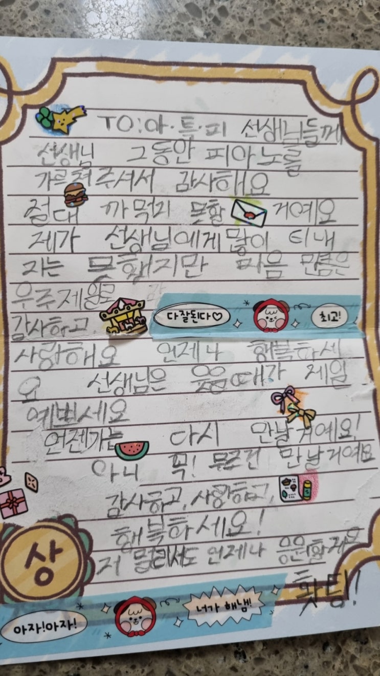 부산으로 이사를 가는 제자!! 마음을 담은 편지에 선생님은 감동이야. 선생님은 언제나 이자리에 있을테니, 꼭 다시 만나자♡ 다시 만날날을 고대하며~~ 새로운 곳에서 잘 적응하길 바래♡ 사랑해 내제자 <img src="https://blogthumb.pstatic.net/MjAyNjAyMDdfNjUg/MDAxNzcwNDc0NTM1Mzk1.rf8rjP6LtDmqGXObwnxusVsgiOPZzq96uktdQ54N1pkg.z8CeCHQNTX6bK4w0xoSmPJkT_x69CBtzj7OryaG3t8sg.JPEG/900%A3%DF20260206%A3%DF184632.jpg?type=s3" />