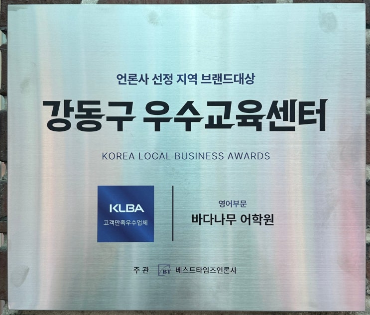 안녕하세요, 강동 바다나무어학원입니다. 오늘은 기쁜 소식을 나누고 싶어요. 바다나무어학원이 2025 강동구 우수 영어학원(우수교육센터 · 영어 부문) 으로 선정되어 기사로 소개되었습니다. 2025 12월, 베스트타임즈 정미용 기자님께서 먼저 연락을 주셨어요 처음 연락을 받았을 때는 솔직히 “홍보성 인터뷰가 아닐까?” 하는 마음에 조심스러웠습니다. 그런데 기자님께서 하신 말씀이 인상 깊었어요. 바다나무 아이들의 리딩챌린지 후기들을 보시고, “이 후기는 만들어진 느낌이 아니라 아이들의 변화가 진짜로 느껴졌다"라는 이유로 연락을 주셨다고 하시더라고요. (그래서 감사한 마음으로 인터뷰를 진행했습니다.) 인터뷰에서 제가....... <img src="https://blogthumb.pstatic.net/MjAyNTEyMThfMjA4/MDAxNzY2MDMyNjYwNjI3.u4NPGDkFOdVu6mJkmJBlUOL1219ey2w4XzbiY8lus9cg.fTvOgvscFkpBv_RyV45sY1UuRwNiTIOh1XbXRm-aImgg.JPEG/IMG_3989_2.JPG?type=s3" />