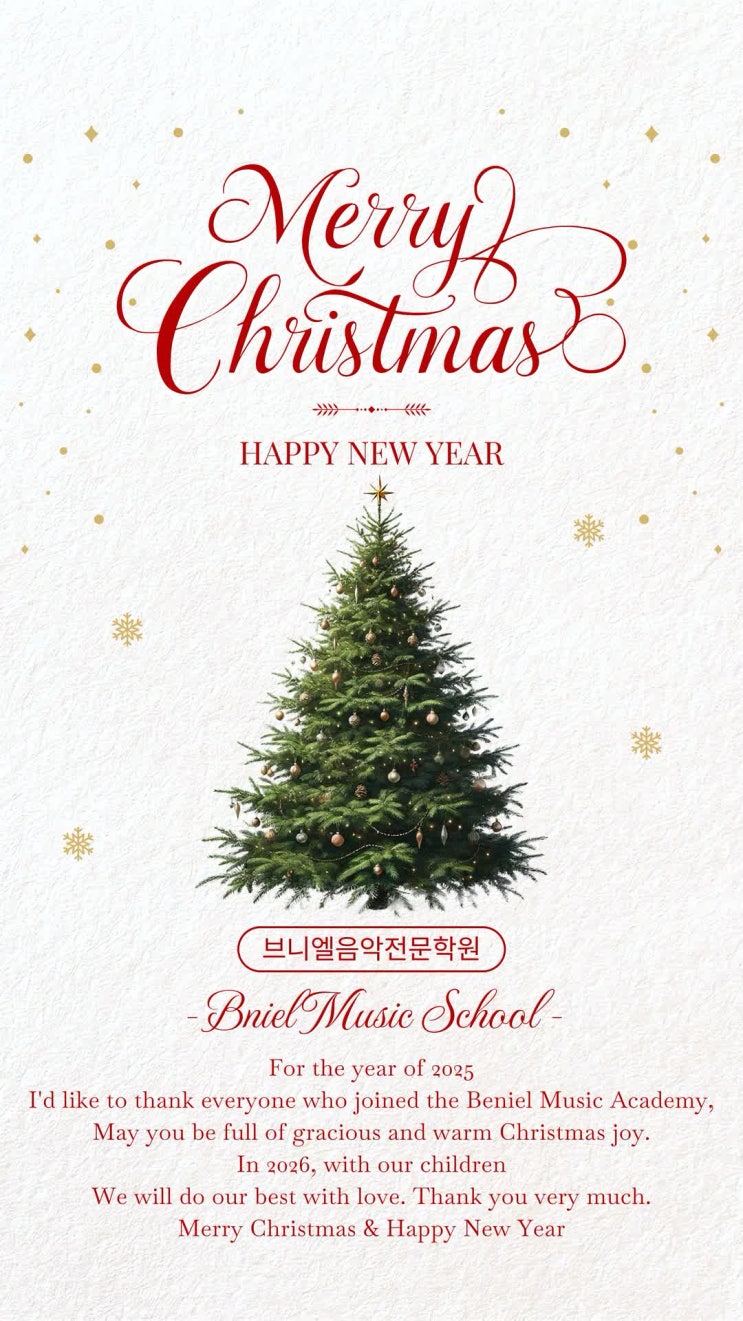 2025년 한 해 동안 저희 브니엘음악전문학원과 함께해 주신 모든 분들께 깊이 감사드리며, 은혜롭고 따뜻한 성탄의 기쁨이 가득하시기를 바랍니다. 다가오는 2026년에도 사랑으로 최선을 다해서 함께 하겠습니다. 감사드립니다. Merry Christmas & Happy New Year #거창피아노 #거창피아노학원 #거창성악 #거창성악학원 #거창학원 #거창음악학원 #거창피아노레슨 #거창피아노개인레슨 #거창음악교육 #거창기초피아노 #거창유치원피아노 #거창유아피아노 #거창초등피아노 #거창성인피아노 #거창피아노성인 #거창시니어피아노 #거창피아노연습실 #거창아림초등학교 #거창아림초등피아노 #거창샛별초등학교 #거창샛별초등피아노 #거창창동초등피....... <img src="https://phinf.pstatic.net/image.nmv/blog_2025_12_23_1761/6C63tRIwTj_01.jpg?type=f480x480" />