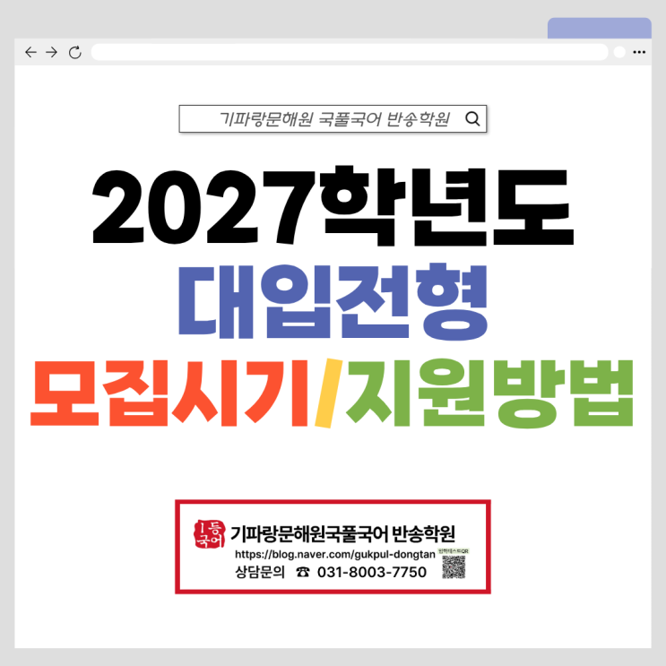 [기파랑문해원 국풀국어 반송학원] 2027학년도 대입전형 모집시기/지원방법