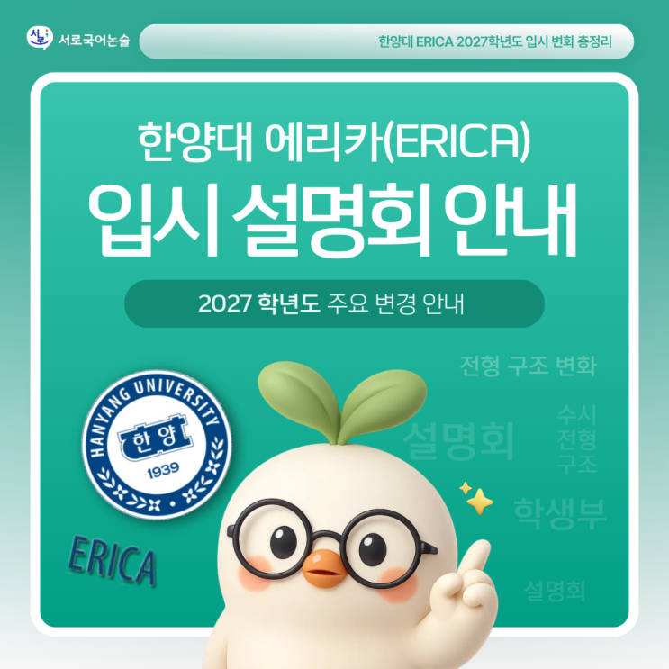 동탄국어학원 ㅣ 한양대 ERICA 2027학년도 입시 변화 총정리