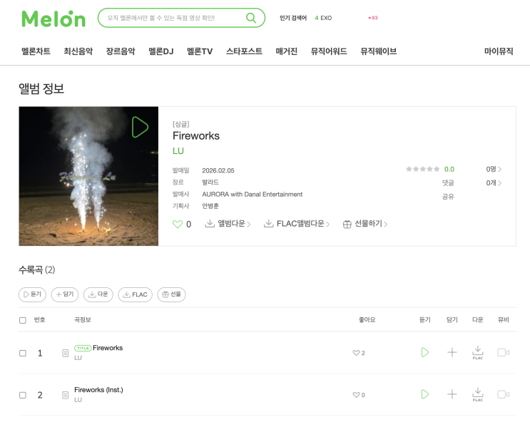 서면실용음악학원 학원생 음반발매 'LU - Fireworks'/알소동보컬 작곡 프로듀싱 미디작곡학원