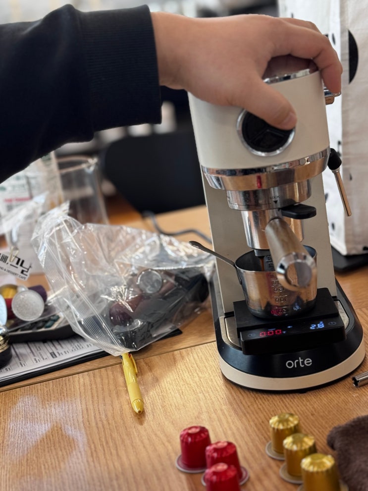 커피 배우는 김에 즐겁게 하면 좋잖아요? 커피 배우는 김에 즐겁게 하면 좋잖아요? 안녕하세요! 개금바리스타학원입니다! 우리가 배우는 커피가 딱딱하게 선생님들께서 이렇게 하세요. 저렇게 하세요만 배우면 어떨까요? 모르시는 분들은 그냥 그게 당연하다고 생각을 하실 수가 있을 겁니다. 그렇게 해도 뭐 교육상에는 전혀 문제될 것이 없습니다. 그러나 개금바리스타학원에서는 다릅니다. 궁금하거나 해 보고 싶은 게 있다? 그걸 해보는 게 먼저입니다. 궁금한데 못해보면 방에서 혼자 할까요? 에이~ 같이 해 보고 이야기도 나눌 사람이 많으면 좋죠~ 며칠전에 하동에 카페를 운영하시는 그날 대표님께서 캡슐을 주시고 가셨는데 궁금한 사람....... <img src="https://blogthumb.pstatic.net/MjAyNjAyMDlfNTQg/MDAxNzcwNTY2MzQ2NzQw.FjLtEPogWLOKRHz-rigE_37yT4oNQWrcq5T26eDJDiMg.MUGgKhfxA2b3dYmOCC1lJOCpYkSWqWmLWidG6aZs-UMg.JPEG/KakaoTalk_20260207_103328649.jpg?type=s3" />