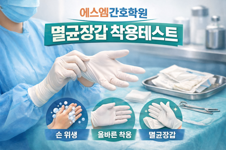 안녕하세요~❤️ 오늘은 22기 친구들의 실습 점검일이랍니다~ 그동안 연습을 잘 했는지에대해서 확인해보러 가볼까요? 시작전 손위생을 먼저 철저히 해야겟죠? 빠짐 없이 철저히 소독중이예요!! ㅣ 환자 감염을 예방하기위해선 무엇보다 올바른 착용방법이 최우선이겠죠?! 정확한 착용 방법을 배우는 것은 환자의 안전을 지키는 기본간호입니다! 멸균장갑은 포장을 개봉할때도 멸균영역을 유지해야해요!! ㅣ 그래서 개봉할때도 가장자리를 잡고 개봉해야하죠! 한쪽 손의 엄지와 검지로 장갑의 접힌 부분을 아래로 향하게 들어올려 착용합니다! ㅣ 오염을 조심하며 천천히 해보는 우리 22기 친구들❤️ 장갑착용을 완료한 손의 2~4째 손가락을 다....... <img src="https://blogthumb.pstatic.net/MjAyNTEyMjRfMjU3/MDAxNzY2NTU2MDY2NTkw.ae3ujKz66GGLiTfPuVsj6Jp36iRK4OgFfgZD5JQs0p4g.ipk3i0BTpkuJVF8Agu6NQR9SJS8V4Gx4LbwKNeA0zXkg.PNG/ChatGPT_Image_2025%B3%E2_12%BF%F9_24%C0%CF_%BF%C0%C8%C4_02_59_43.png?type=s3" />