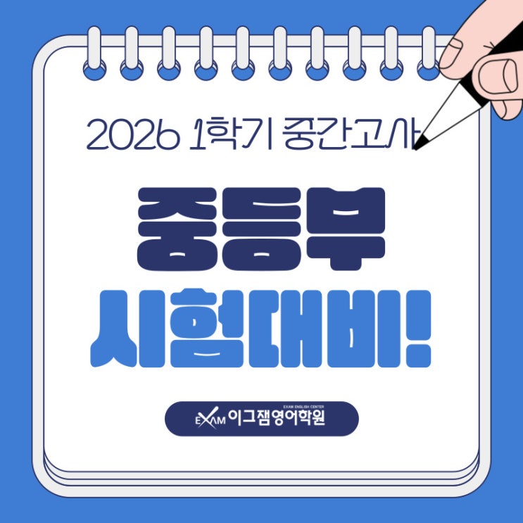 안녕하세요 :) 사직동 친구들의 영어 성적을 수직 상승시켜 줄 에너지 뿜뿜 사직 이그잼 영어학원입니다! 벌써 3월도 막바지에 접어들고 있어요. 새 교과서, 새 친구들과 친해지느라 바쁜 와중에도 우리 중학생 친구들 머릿속을 떠나지 않는 고민... "아, 중간고사 어떡하지?" 맞죠? 특히 이번에 첫 시험을 치르는 중2 친구들과, 고등 입시를 앞두고 내신 한 점 한 점이 소중한 중3 친구들을 위해! 사직동 영어의 중심 이그잼이 사직중학교시험대비를 비롯한 '학교별 밀착 내신 대비반'을 전격 개강합니다! 이번 중간고사, 이그잼과 함께라면 인생 점수 경신은 시간문제라구요! 사직동 영어, '이그잼'은....... <img src="https://blogthumb.pstatic.net/MjAyNjAzMzBfMTMy/MDAxNzc0ODY3OTUyMTIz.s62Z4R7GA0RH2c2BqKgDkwUe8W--iV5bEFTiG-fDVFkg.wdCdvH9qoIaTCVOwWZVQebpc34t3IlT9BnHh4DMgpUUg.JPEG/001.jpg?type=s3" />