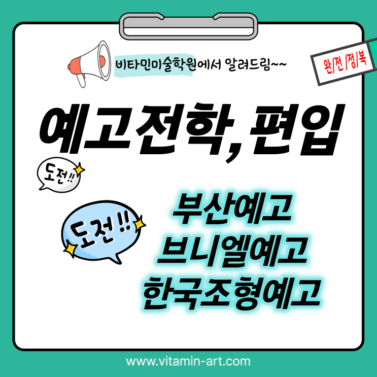 2027 한국조형예술고등학교, 부산예고, 브니엘 예고 편입시험 완벽하게 이해하기 - 비타민 미술학원