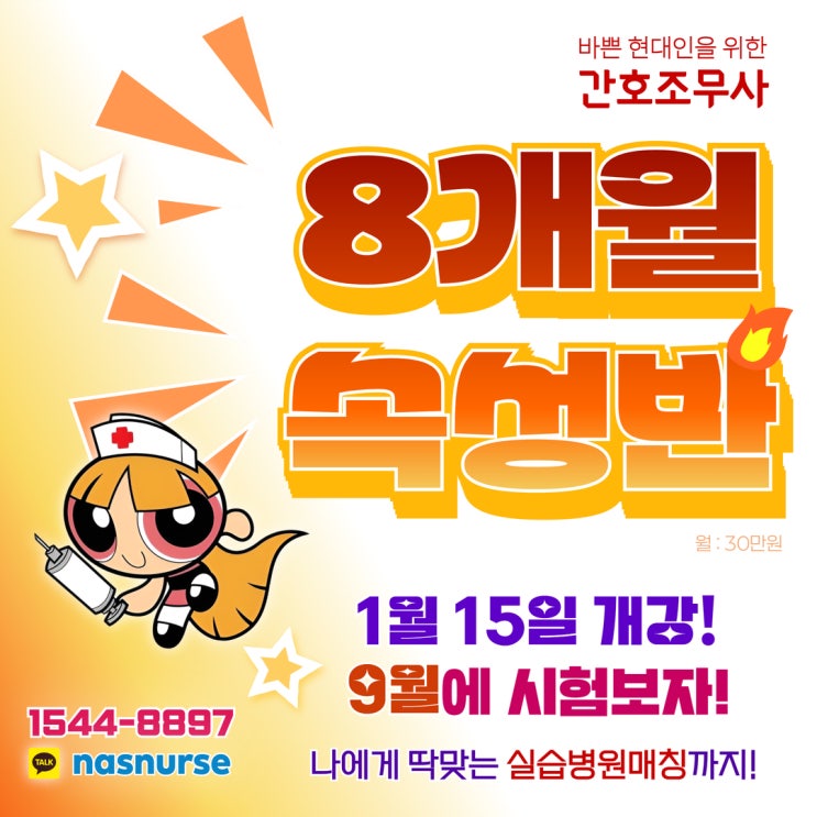 [나스간호학원] 8개월 속성반, 1월 15일 개강!