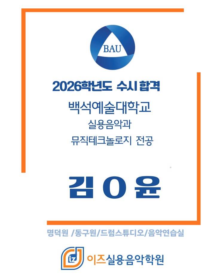 [이즈실용음악학원] 2026학년도 ::작곡/음향트랙:: 수시합격 축하합니다!!