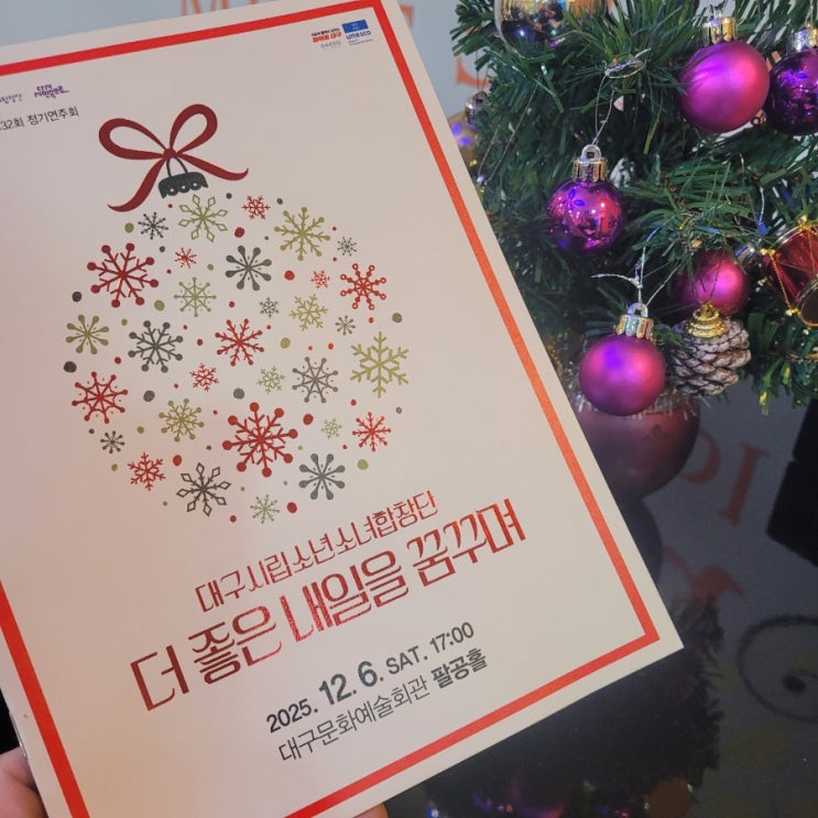 12월6일 토요일은 우리줄리어드음악학원친구에게 정말 뜻깊은날이었습니다. 대구시립소년소녀합창단원으로 활동하며 피아노와 성악을 꾸준히병행해온 친구가 드디어 무대에 올랐습니다. 몇달동안 학교수업 연습 합창단스케줄까지 누구보다 바쁘게 지내면서 항상웃으며 연습하던 모습이 떠올라 공연내내마음이 뭉클했답니다. 정말 너무 고생했고 멋지게해냈다는 말을 꼭전하고싶습니다. 팔공홀은 공연시작부터 설렘가득했고 부모님들의 열정과 응원도 대단했어요. 아이들이 이렇게 무대에서 반짝일수있었던이유는 이렇게 든든하게 지켜봐주는 가족들의 응원.사랑덕분이라고 느꼈어요. #줄리어드음악학원 #우쿨렐레레슨 #줄리어드음악학원 #대구중....... <img src="https://blogthumb.pstatic.net/MjAyNTEyMTBfNjgg/MDAxNzY1MzQyODkwODQx.29g-ZNuhOytalOCqwMbNgposmadTLHOBF1_n7CtpzJgg.qdwzFqKSEKacfLyW29p_oUI3QWtMuwCHuZU9ipm6tnAg.JPEG/900%A3%DF20251210%A3%DF133324.jpg?type=s3" />