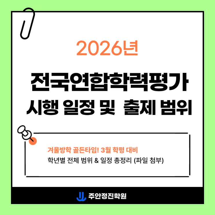 안녕하세요, 이제 재학생의 경우, 방학에 돌입하기 직전인데요~ 혹시 방학 때 무슨 게임 해야지, 방학 때 다이어트 해야지, 방학 때 늦잠을 완전 늦게 자야지만 생각하는건 아니겠죠??!?! 주안정진학원에서는 윈터스쿨 프로그램을 진행하고 있어서 학교 내신이 끝난 현재 학교에서는 생기부 마무리만 하고 있고, 집에서는 놀게 된다고 학교 다니는 중에도 방과후에 와서 공부하는 학생들이 있습니다!! 이제 방학이 끝나면 바로 3월부터 2026년도 모의고사를 보기 시작합니다!! 방학동안 2026년도 모의고사 범위를 알고, 미리 준비하셔야 합니다! 개학하면 아주 새로운 반, 새로운 학년, 새로운 진도에 적응하는데 바빠서 모의고사 준비가 쉽지 않....... <img src="https://blogthumb.pstatic.net/MjAyNjAyMDNfMjI2/MDAxNzcwMDkxMTc1OTg4.87FnKvOyCvZljhax13rHIb0oTentVTXGa1Iq_kV9HgMg.TTzCRBjYhyzMWJAbPnods6CXrdeaMoEj7aPKLyDdYSUg.PNG/%C1%A6%B8%F1%C0%BB_%C0%D4%B7%C2%C7%D8%C1%D6%BC%BC%BF%E4._%284%29.png?type=s3" />