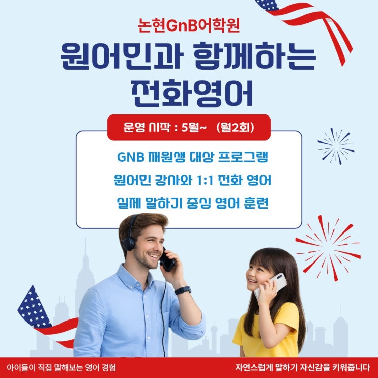 안녕하세요 논현동에서 아이들과 함께 성장하고 있는 논현 GnB어학원입니다. 아이들의 영어 실력을 “진짜 사용할 수 있는 영어”로 만들기 위해 5월부터 GnB 재원생 대상으로 원어민 폰티칭(Phone Teaching) 프로그램을 시작합니다. " 원어민 강사가 우리집에 전화를 걸어옵니다~ " 영어는 ‘아는 것’과 ‘말하는 것’이 완전히 다른 영역이기에 막상 말하려고 하면 쉽게 입이 떨어지지 않는 경우가 많습니다. 이유는 단순합니다. 문법을 ‘이해’하는 것과 ‘사용’하는 것은 전혀 다른 영역이기 때문입니다. GnB에서는 "생각열기 학습법"을 통해 문장을 구조로 이해하는 데서 끝나는 것이 아니라 문장을 빠르게 만들어내....... <img src="https://blogthumb.pstatic.net/MjAyNjA0MDZfMjAz/MDAxNzc1NDQwMjI1MjY2.w3-MWYeBF8Hu2UIBb1qrlfaX3jx7JtWUEpa19UW3WH0g.COMvd9fZ5z6-twXKoBcivNLV3_JA7JNJzmGCfZhmorYg.JPEG/%C1%A6%B8%F1%C0%BB_%C0%D4%B7%C2%C7%D8%C1%D6%BC%BC%BF%E4._%2830%29.jpg?type=s3" />
