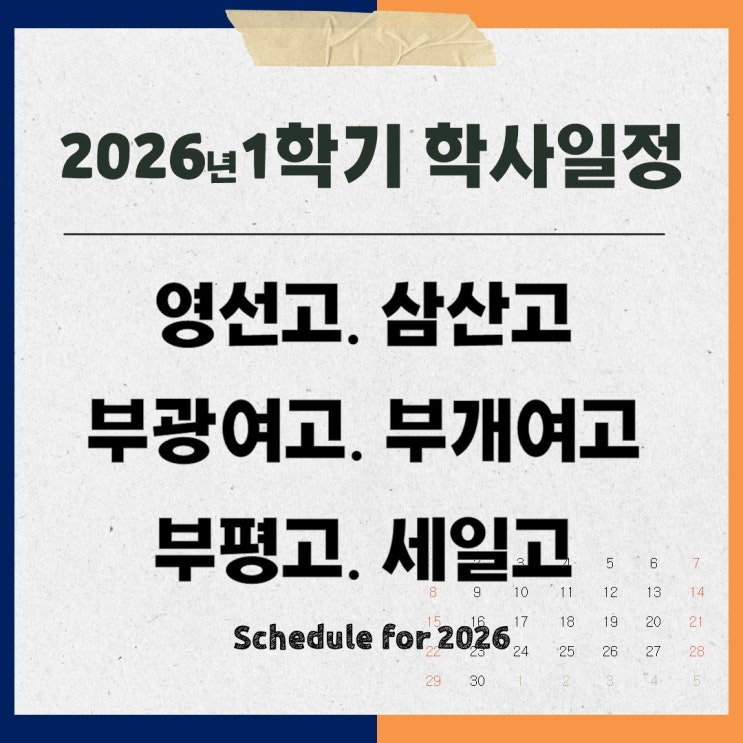 2026년 "영선고, 삼산고, 부광여고, 부개여고, 부평고, 세일고" 1학기 학사일정 정리
