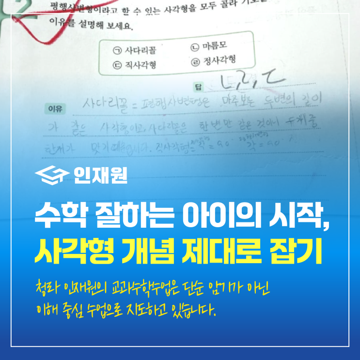 [청라 인재원 교과수학]청라 수학 잘하는 아이의 시작, 사각형 개념 제대로 잡기