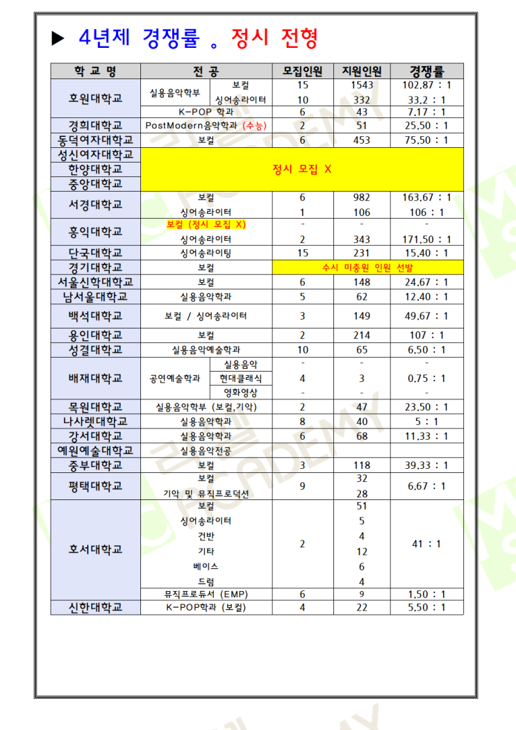 2026학년도 실용음악과 정시전형 경쟁률 분석 | 인천 서구 가좌동 라엘실용음악학원