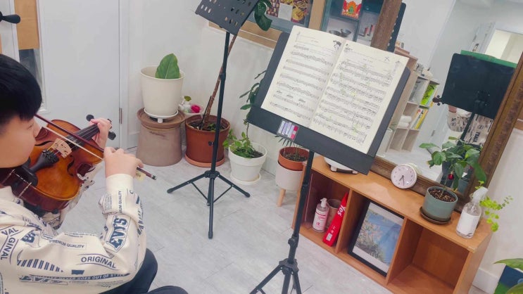 바이올린 교재 시노자키 2권 연습/레슨 포인트 *활 짧게 쓰기 *리듬, 속도 지키며 활돌리기 *왼쪽으로의 현 이동 *오른 손으로 활 짓누르지 않기 *여러 규칙 복합 적용하며 다운업 헷갈리지 않기 아직 연주 중 왼손이 빠지는 부분들이 좀 보이지만 늘어지는 활쓰기 교정, 왼쪽으로의 현 이동 시 팔과 손의 움직임 순서 인식, 리듬/템포 지키며 활돌리기 숙달 속도 향상, 오른 손으로 짓누르지 않기, 여러 규칙 적용했을 때 다운업 헷갈리는 부분 수정 속도 향상, 동작 준비 전에 익숙한 패턴 먼저 급하게 반복하는 습관 교정 등 많은 부분 좋아졌네요 <img src="https://phinf.pstatic.net/image.nmv/blog_2026_02_27_1591/ISPxfC2MOr_03.jpg?type=f480x480" />