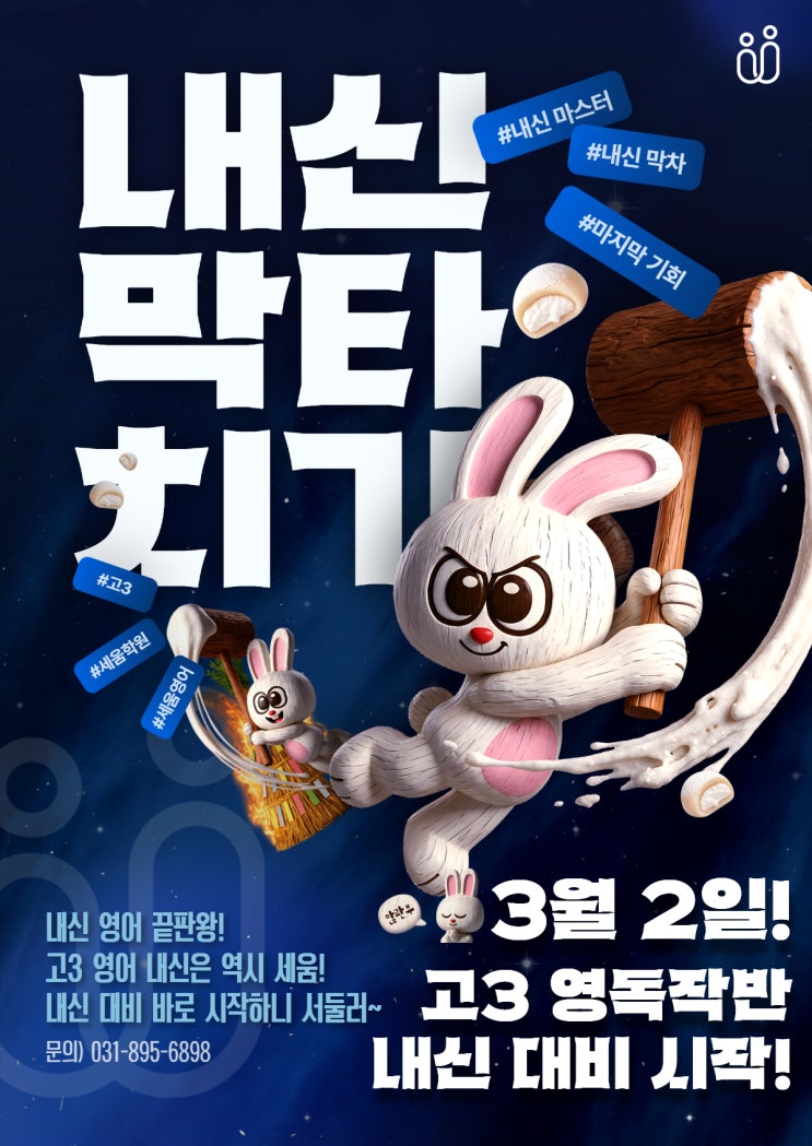 고3 마지막 내신! 끝 날 때까지 끝난게 아니다. '내신 막타 치기!' 고3 영독작반 내신 대비 3월 2일 시작! 머뭇거릴 시간이 없다! 마지막 내신, 포기 할 것인가? 기회를 잡을 것인가! 압도적인 내신 최상위 등급 결과의 권위자 세움학원에서 마지막 '막타'를 칠 수강생을 모집합니다. <img src="https://blogthumb.pstatic.net/MjAyNjAyMjhfMjMw/MDAxNzcyMjg2ODcxMjQ2.uiC5xu4_zkOjyvlXNd2E22AW-eLhpOHJHEDGEg12jcog.LJ8vY1rVcvLoONGn-Svqm7iHXN3e9xbYOz2gwLCfnuUg.JPEG/%C1%A6%B8%F1%C0%BB_%C0%D4%B7%C2%C7%CF%BC%BC%BF%E4_%2814%29.jpg?type=s3" />
