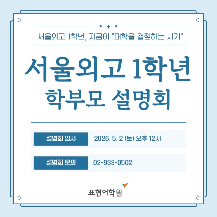 서울외고 1학년, 지금이 ‘대학을 결정하는 시기’입니다 : 표현어학원 중계캠퍼스 학부모 설명회 안내