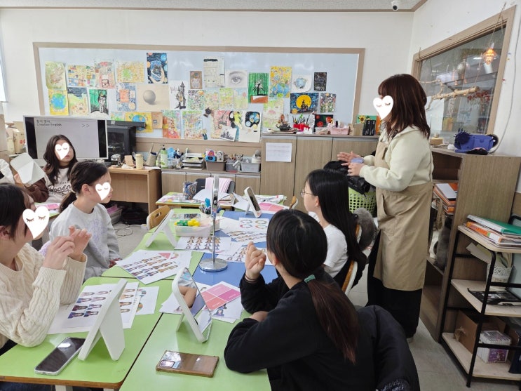 ✨ 샘터학원 겨울방학 특강: 영어와 미술의 융합 수업 ✨ 샘터학원에서는 이번 겨울방학을 맞아 처음으로 영어와 미술을 융합한 창의적 특강을 진행했습니다. ✏️ 아이들은 자기 자신을 탐색하고, 영어로 표현하며, 창의적인 작품을 완성하는 과정을 즐겁게 경험했습니다. 1주차: 나의 퍼스널 컬러 메이크업 튜토리얼 아이들은 얼굴 톤을 분석하며 웜톤(Warm tone), 쿨톤(Cool tone), 봄(Spring), 여름(Summer), 가을(Autumn), 겨울(Winter) 컬러 이론을 학습했습니다. Vocabulary : bright, pale, vivid, soft, warm, cool Example Sentence : “My skin tone is warm and soft.” 자신에게 어울리는 색을 찾으며 영어 형용사를....... <img src="https://blogthumb.pstatic.net/MjAyNjAzMDJfMTY0/MDAxNzcyNDU2MDc4Mjc5.cnsTptEYcCpClp2ifqBuaEjgSOPBHauYC3-UTvktt5Ig.-1FLzSMLLenvokG1Jn-JBta7SW2NRBZMmorQzDxCFgYg.JPEG/KakaoTalk_20260214_212625602_18.jpg?type=s3" />