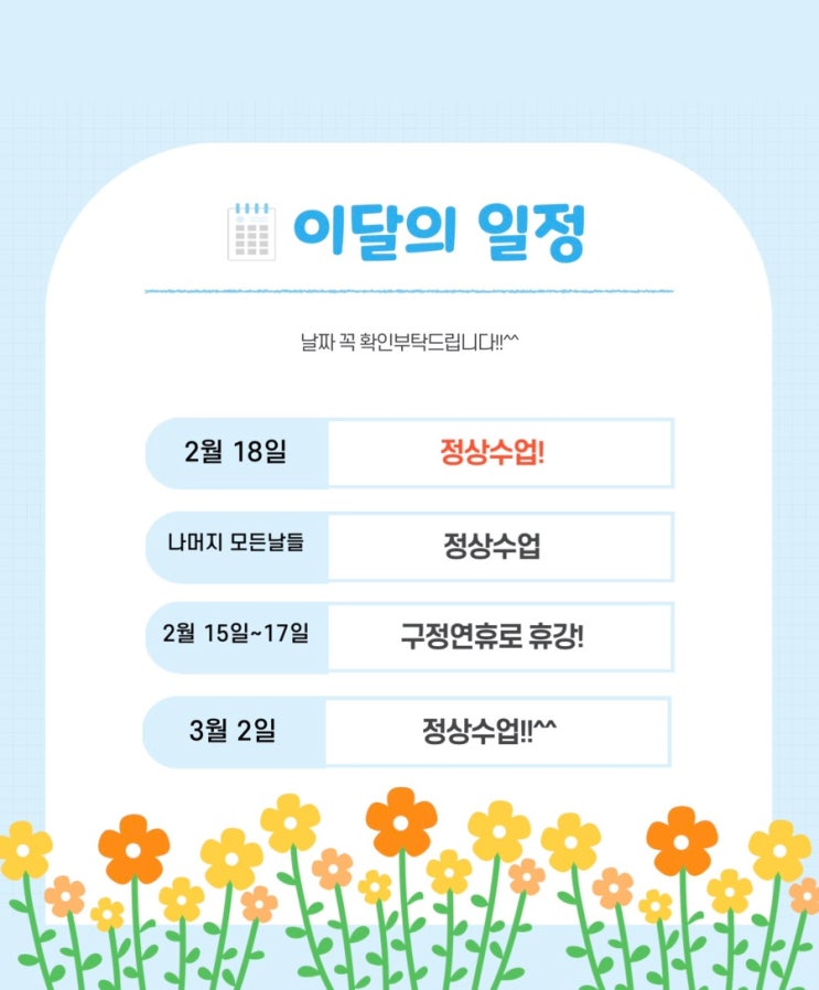 등록번호 제1486호 이쌤수학학원입니다. 구정연휴 마지막날은 정상수업합니다^^ 2월15일~17일까지 휴강입니다. 3월2일부터 개학시간표로 돌아가며 정상수업입니다^^ <img src="https://blogthumb.pstatic.net/MjAyNjAyMDJfMjMy/MDAxNzcwMDM1NDgwNjQ0.sYUn3Ryg7iS_492eTlfEANDHtPLbVuzvCFUVenMOey4g.O9_t2F4HPPwkWPtuX_UZKcmsji4lbgAKMx8c3PQwFmAg.JPEG/IMG%A3%DF6058.jpg?type=s3" />