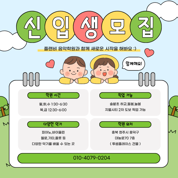 청주 음악 학원 신입생 모집 I 플랜비 음악 학원에서 새로운 시작을 해보세요 :)