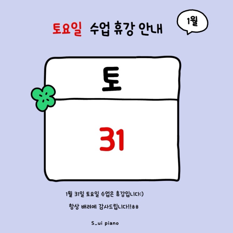 이번주 토요일 하루 수업 쉬어가요:) 시댁있는 며누리는.. 가족행사에 맞춰 내려갑니다아아.. 가족 행사라… 이번 주말에는 연락이 잘 안될것같아요-!! 문의문자 남겨주시면 답변 남겨드리겠습니다-! 0507. 1413. 1089 잘 돌아와서 휴식하고 월요일날 뵙겠습니다♥️ <img src="https://blogthumb.pstatic.net/MjAyNjAxMjdfMjkg/MDAxNzY5NTA5NzkzNDMx.U9wz-8xgeteQm1CQqWQQAb9r7cR-KyNr0JysmaLC88Qg.QhkRIt6-zOhMeQ2sW2D_YVIMJ04MX_a2CZfTT55HBtYg.JPEG/IMG%A3%DF3007.JPG?type=s3" />