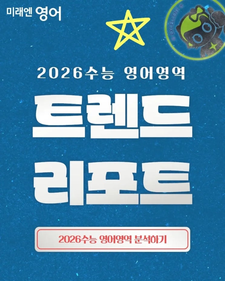 안녕하세요❤️. 영어로 미래를 꿈꾸다, 미래엔영어입니다. 2026학년도 수능 영어는 많은 학부모님과 학생들에게 큰 충격을 주었어요. 절대평가임에도 불구하고 역대 최저 1등급 비율(3.11%)을 기록했습니다. 이 리포트에서는 왜 영어가 이렇게 어려워졌는지 어떤 유형이 변별력을 만들었는지 앞으로 우리 아이들은 어떻게 대비해야 하는지 초등–중등–고등을 모두 연결한 관점에서 쉽게 설명해드릴게요. 1️⃣ 2026 수능 영어, 왜 이렇게 어려웠을까? 올해 수능 영어는 국어·수학보다도 1등급 비율이 더 낮았고, 언론에서도 “역대급 난이도”, “수능 역사상 가장 어려웠다”는 표현을 아끼지 않더라구요. 특히 절대평....... <img src="https://blogthumb.pstatic.net/MjAyNTEyMDlfOTkg/MDAxNzY1MjY4MzAyMjc2.G6yuaP2gUVZB5Cfye0FHha2Itj3dnMZhGotzENEdvCcg.yK2p3FLwhJ8OJqwqINl1EeM0cXf6XG8guhPlgF-z4H8g.JPEG/900%A3%DF1764907343667.jpg?type=s3" />