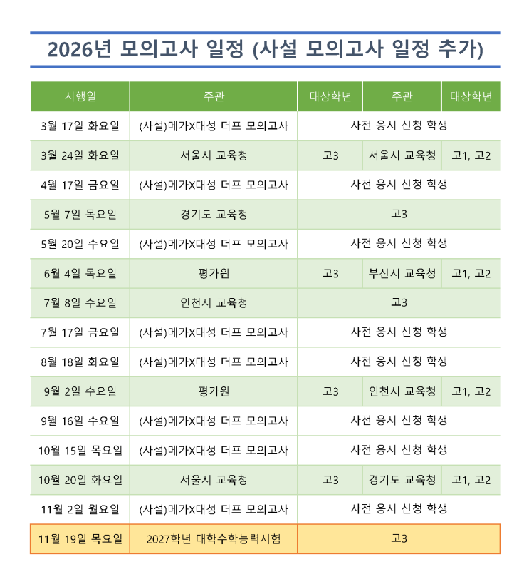 2026년 모의고사 일정(+사설 모의고사 일정 추가)