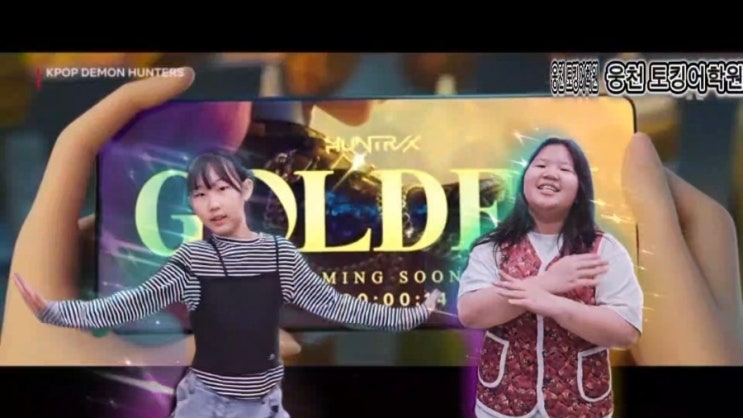 웅천 토킹어학원 열정쌤 Lynn이에요♡ 우리 친구들이 11월에 배운 'Golden' 케이팝 데몬 헌터스 OST ‘골든’ 미국 빌보드 ‘핫 100’ 1위와 영국 오피셜 싱글 1위를 기록한 K팝 여성 보컬 첫 정상곡입니다. Golden을 어떻게~ 더 재밌게~ 배웠고 즐겼는지 함께 만나보실까요♡ 흥얼흥얼 대충 얼버무려 부르는 노래는 가라!! 가사의 뜻을 알고 접근해야 이해 쏙쏙!! 그래야 재밌게 노래를 배울 수 있답니다♡ 케데헌의 주인공이 되어 보자♡ 친구들과 함께 케데헌의 뮤직 비디오의 주인공이 된 나! 어때요~? 웅천 토킹어학원에서 즐겁게 케데헌을 만나본 소감은요~~^^ 아이가 즐거운 영어학원!! 재밌게 시작해서 강도 높게♡ 제대로 가....... <img src="https://blogthumb.pstatic.net/MjAyNTEyMDJfMTM3/MDAxNzY0NjUwMTE1MjE2.IVCx6P1Vyp6m0O0zSqNfoVZdWOYP9YjqbXQycPjJ1DUg.fbhZzSpPeuDDtEoN5M7XtKf8O8q8H-eiARZ0nnzGSxEg.JPEG/900%A3%DFScreenshot%A3%DF20251202%A3%DF133426%A3%DFGallery.jpg?type=s3" />